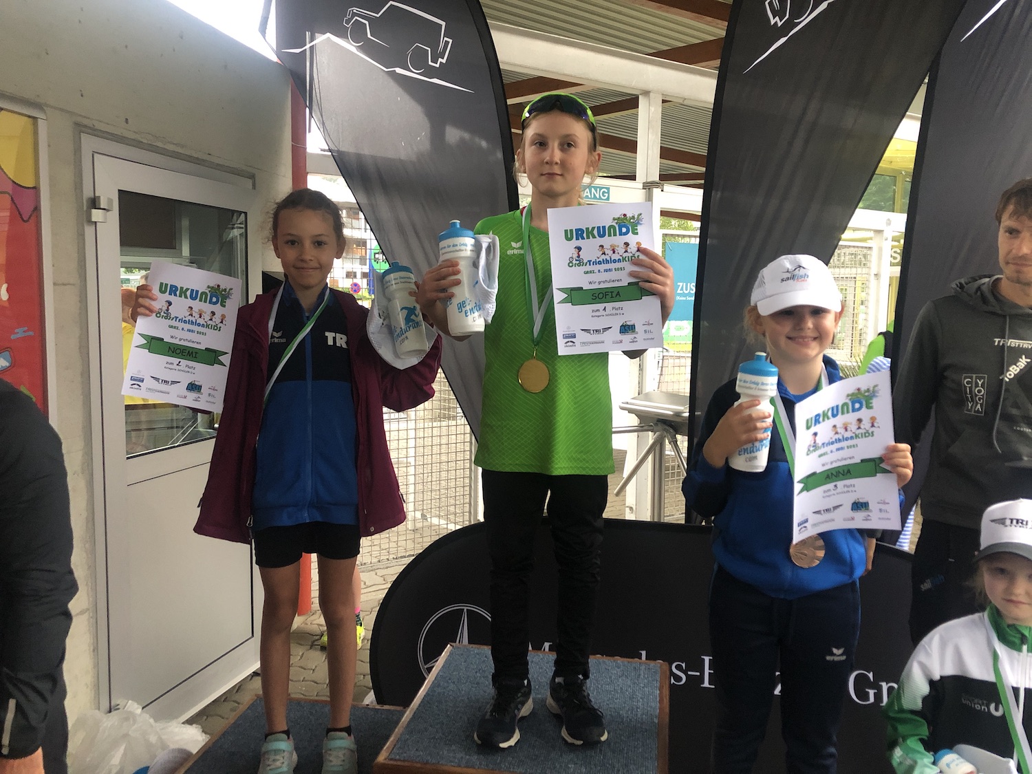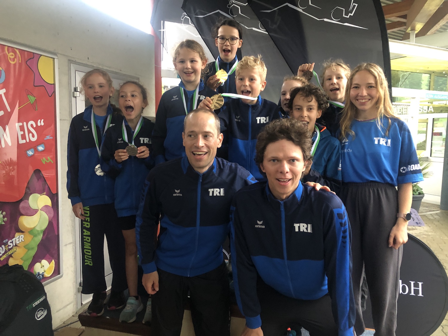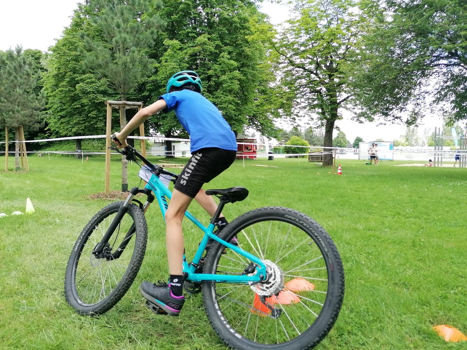Der Cross-Triathlon für die Schülergruppen E-D wurde nämlich gesplittet in einen Rad-Geschicklichkeits-Parcours gefolgt von einem Duathlon. Der Radparcours konnte noch planmäßig durchgeführt werden und die Kids freuten sich auf den Schwimm/Laufteil (Schwimmen im Riesenpool) als der Wettergott ein ordentliches Gewitter vorbeischickte und den TO´s keine andere Option blieb als den Duathlon abzusagen und die Gewinner anhand des Rad-Teils zu ermitteln.