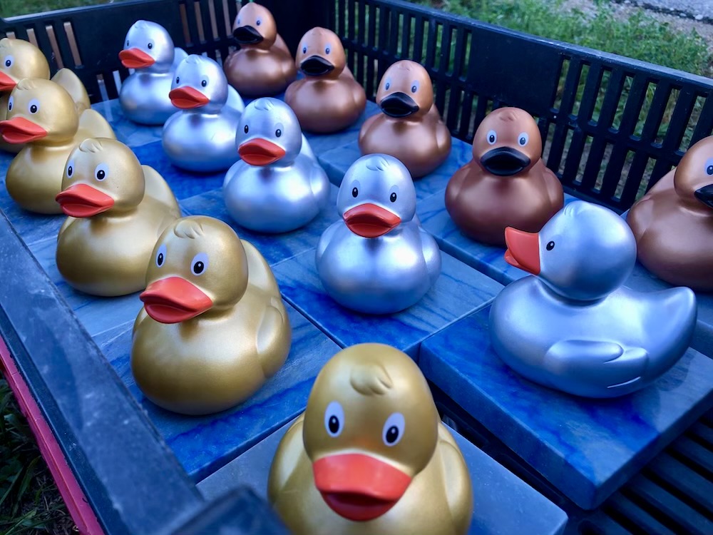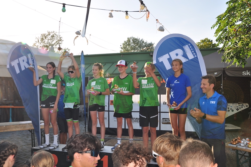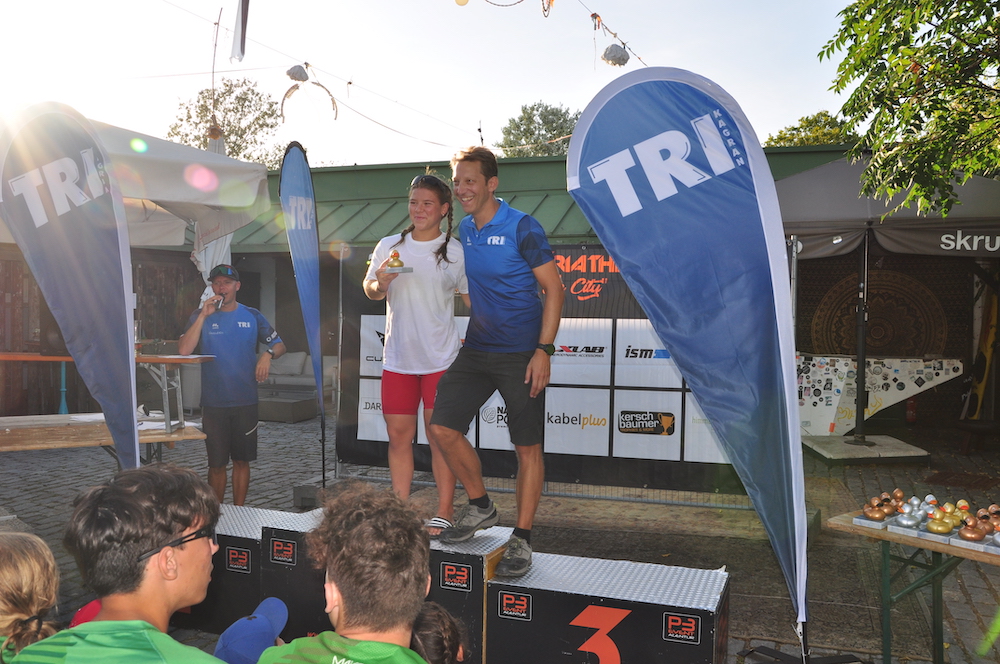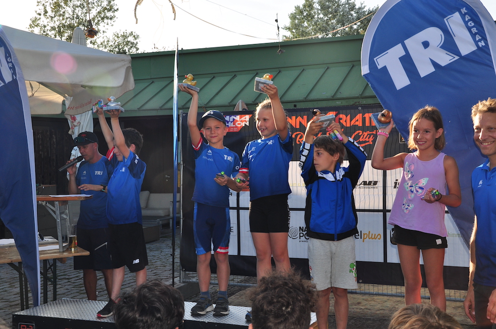 Die Siegerehrung am Ende des Events war der krönende Abschluss eines fantastischen Tages. Die Top-3 Platzierten erhielt die begehrte „TRIxi„, den Pokal in Form eine Quietschende, und lobende Worte für die erbrachte Leistung von TRI-Kagran Obmann Christian Ousko-Oberhoffer und Triathlon-Wien Verbandspräsident Daniel Döller.