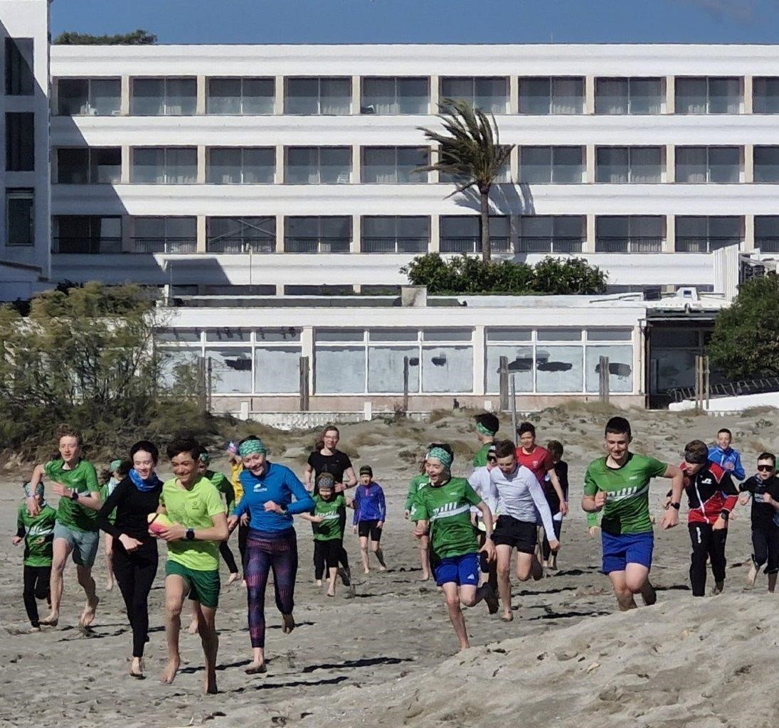 - Laufspiele für die jüngeren Athlet:innen direkt am Strand