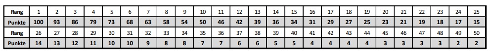 Alle Teilnehmer mit einer gültigen ÖTRV Jahreslizenz bei einem Wiener Triathlonverein werden gewertet. Die Punkte werden von Platz 1 bis Platz 50 je Altersklasse nach folgender Punktetabelle vergeben: (Sch-E bis AK 50 [Analog AK Wr. Meisterschaften]). Die Punktevergabe der einzelnen Bewerbe des Wiener Nachwuchscups erfolgt nach der Gesamteinlaufliste der jeweiligen Altersklasse. Eine Meldung für den Cup ist nicht notwendig, die Teilnehmer mit gültiger ÖTRV Jahreslizenz werden automatisch in die Cupwertung aufgenommen. Es können nur Athleten gewertet werden, die mit dem jeweils gültigen Vereinsnamen angemeldet sind. Bei Punktegleichstand zählen die besseren Einzelplatzierungen. Ein Streichresultat ist nicht möglich.